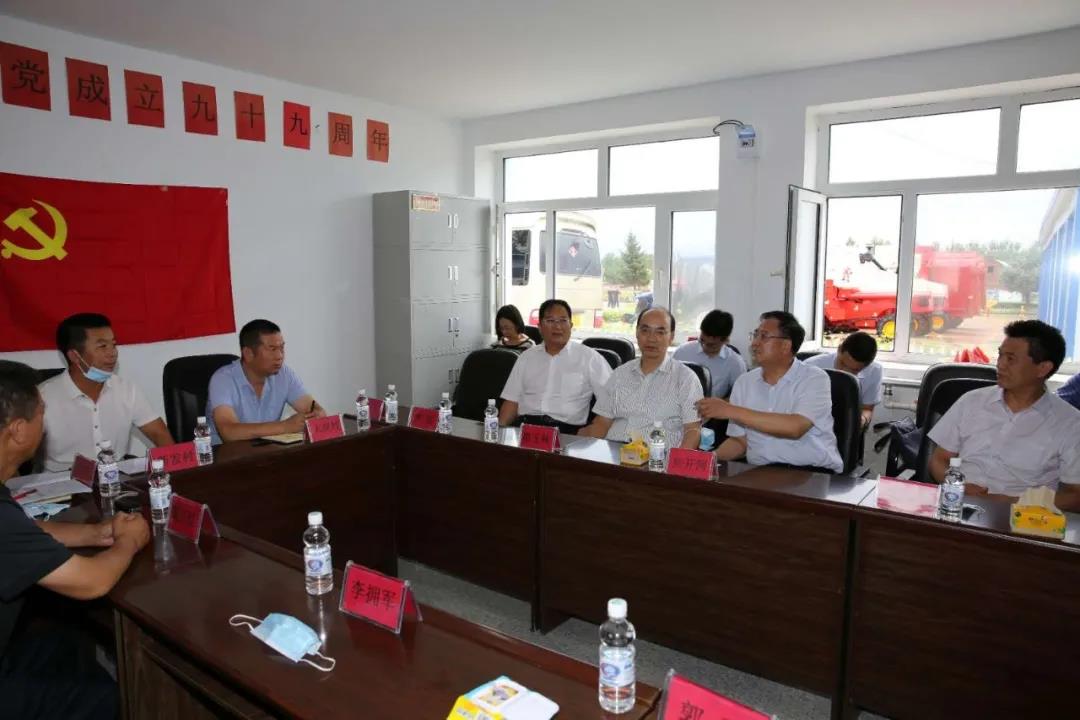 在興隆鄉(xiāng)新建村,焦開河聽取了大崗村、新發(fā)村和新建村關(guān)于農(nóng)機(jī)服務(wù)隊(duì)項(xiàng)目運(yùn)行情況、收益和減貧的情況介紹,詳細(xì)了解了項(xiàng)目幫扶機(jī)制及未來發(fā)展想法。焦開河表示,農(nóng)機(jī)服務(wù)隊(duì)不僅實(shí)現(xiàn)了對(duì)貧困戶的幫扶,還可以通過創(chuàng)收、維護(hù)、解決就業(yè),帶動(dòng)農(nóng)業(yè)機(jī)械化發(fā)展,是一個(gè)可持續(xù)項(xiàng)目。他強(qiáng)調(diào),下一步要整合好各村農(nóng)機(jī)服務(wù)隊(duì),實(shí)現(xiàn)更大規(guī)模的連片種植。焦開河專門叮囑集團(tuán)公司派駐大崗村第一書記吳寶明,要充分發(fā)揮駐村第一書記作用,抓好黨建工作,積極培育致富帶頭人,為大崗村后續(xù)發(fā)展奠定好基礎(chǔ)。