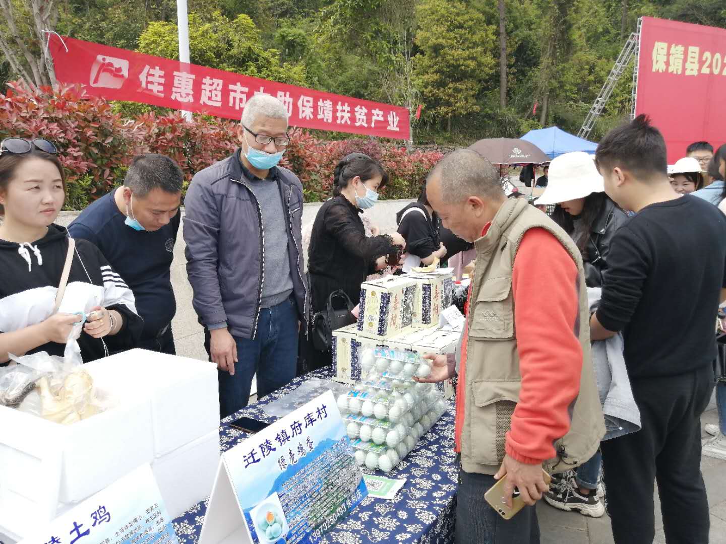 第一步便是養(yǎng)殖江漢綠殼雞,販賣綠殼土雞蛋?!傲窒伦匀环硼B(yǎng),生態(tài)自由采食,原生態(tài)富硒綠殼土雞蛋,1.5元/個,走過的路過的不要錯過啊……”這是朱利慶于“保靖縣2020年消費(fèi)扶貧愛心認(rèn)購活動”上的推銷廣告詞。2020年4月9日,駐村工作隊(duì)又一次成功地把村集體經(jīng)濟(jì),特色養(yǎng)殖——府庫綠殼土雞蛋推向了當(dāng)?shù)厥袌?,此次展銷會共現(xiàn)場銷售2720個雞蛋,村集體當(dāng)天收入4080元并與多家單位洽談了長期意向銷售。工作隊(duì)又購進(jìn)8000羽綠殼蛋雞苗,以此進(jìn)一步擴(kuò)大養(yǎng)殖規(guī)格,帶動老百姓一起增收。