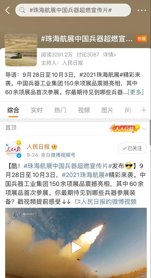人民日報、新華社、中國日報、共青團(tuán)中央、國資小新、騰訊軍事、鳳凰軍事、新浪軍事等新媒體發(fā)布的集團(tuán)公司航展宣傳片等視頻作品燃爆全網(wǎng),閱讀量突破三千萬人次,得到外交部發(fā)言人趙立堅轉(zhuǎn)載點(diǎn)贊。集團(tuán)公司微信、微博、抖音號、微信視頻號等新媒體宣傳片播放閱讀量超過400萬人次。同時,央視新聞、新華社、中國之聲、央視軍事、央視新媒體、解放軍報、共青團(tuán)中央、國資小新、環(huán)球時報等多家媒體對集團(tuán)公司靜、動態(tài)展區(qū)進(jìn)行現(xiàn)場直播,在電視端、客戶端、微信視頻號、微博、B站、快手、抖音等平臺受到高度關(guān)注。著名軍事專家杜文龍、央視主持人顧國寧、央廣中國之聲主持人王藝等直播兵器館、動態(tài)表演區(qū)裝備。 《參考消息》、新華網(wǎng)、央廣網(wǎng)、中國日報、科技日報、解放軍報、人民網(wǎng)、中國新聞網(wǎng)、中國青年網(wǎng)、中國網(wǎng)、中工網(wǎng)、央視網(wǎng)、環(huán)球網(wǎng)、騰訊網(wǎng)、新浪網(wǎng)、鳳凰網(wǎng)、搜狐網(wǎng)、網(wǎng)易網(wǎng)、今日頭條等中央主流媒體和知名網(wǎng)絡(luò)媒體以及南方日報、廣東電視臺、北京電視臺、新京報、珠海傳媒集團(tuán)、深圳衛(wèi)視等省市媒體對集團(tuán)公司參展情況進(jìn)行了圖片、文字、視頻報道。 航展期間,備受關(guān)注的中國兵器館,參觀的觀眾絡(luò)繹不絕。 |
