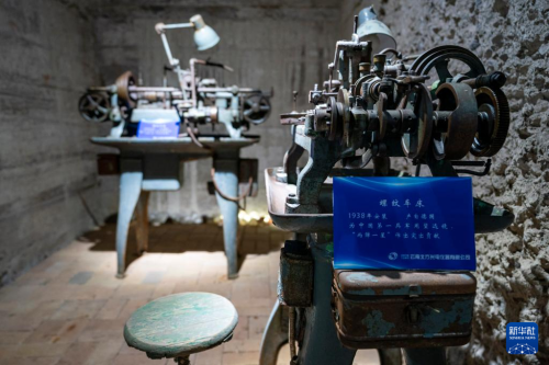 這是5月16日拍攝的中國光學歷史博物館內收藏的螺紋車床。